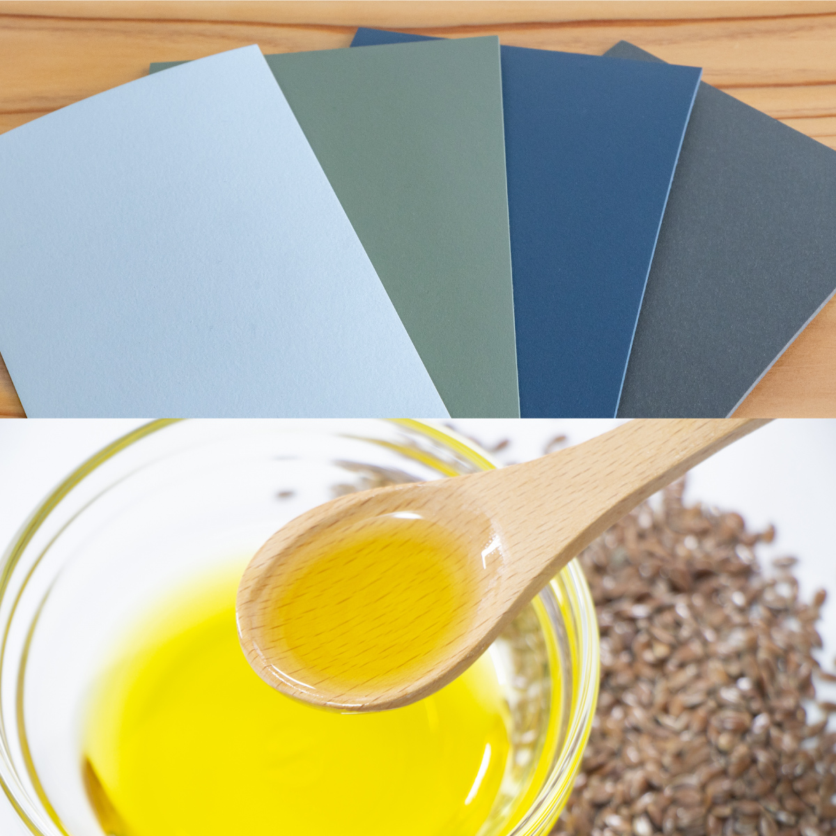 リノリウムとは、亜麻仁油、ロジン(松脂)、木粉、石灰粉、天然色素などの原材料から作られた、