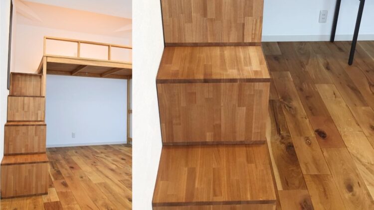 階段部分には、幅900mm・1段あたり高さ約350mmの収納階段を設置。
